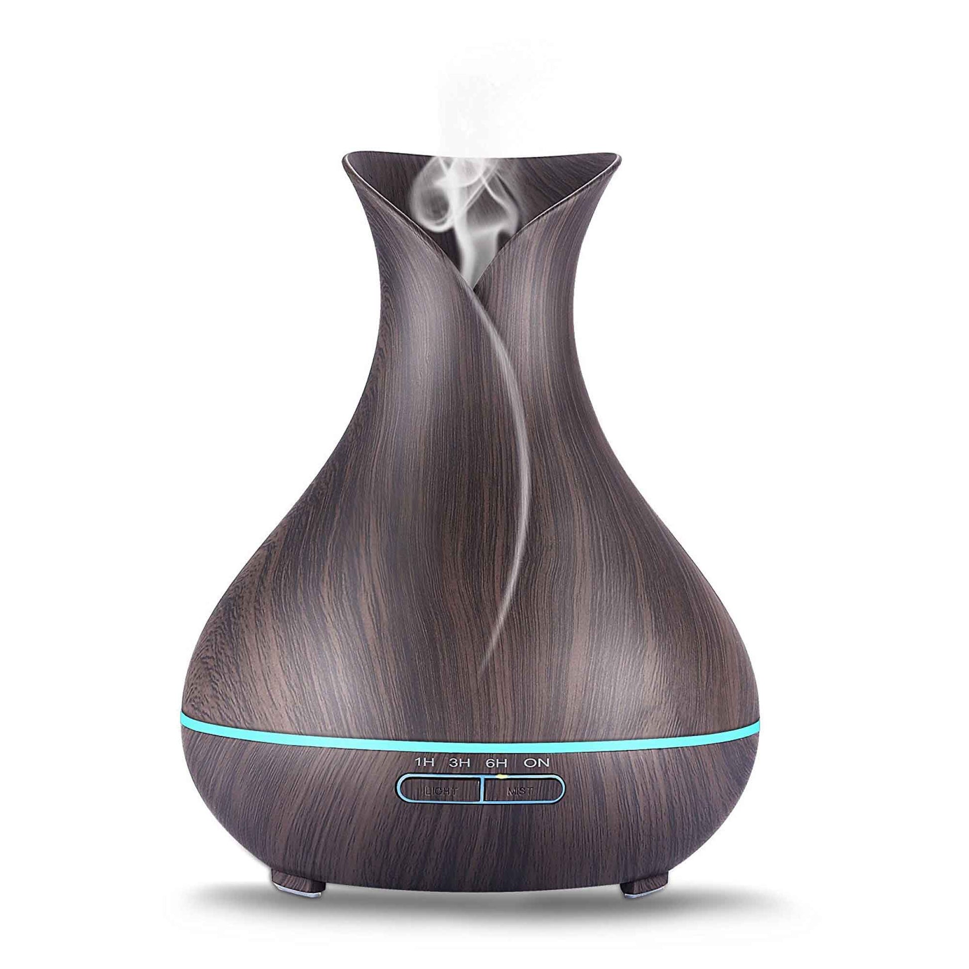 Its sleek Tulip-shaped wood grain finish releases mist infused with essential oils, improving air quality and promoting relaxation.