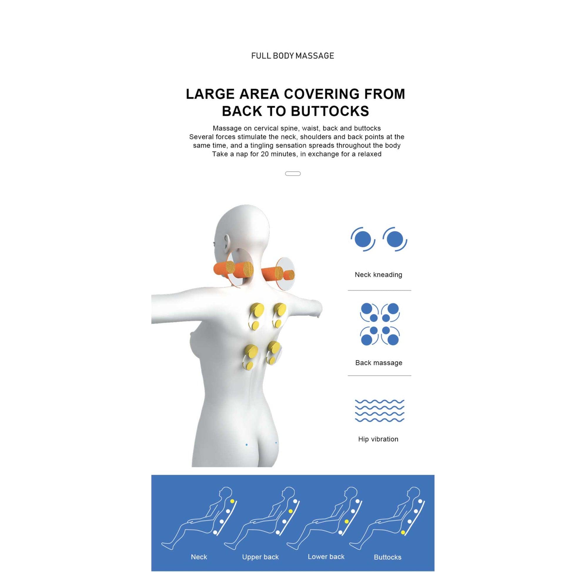 - 8 heating kneading massage nodes for comprehensive back coverage